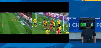 比赛的第21分钟,杨希主罚角球左脚劲射被李昊封出,莱昂纳多补射破门。在莱昂纳多破门之后,李昊向主裁判愤怒投诉,认为克劳德冲撞了自己。随后,视频助理裁判介入判罚,并且要求主裁判回看慢镜头。
